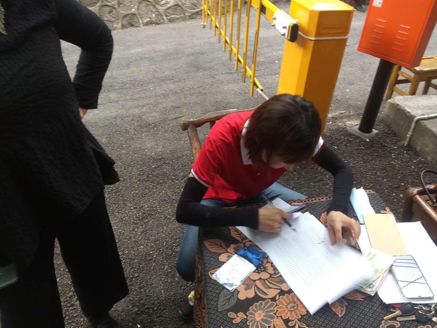 (圖為王雪蓮同志在南臺路2號收取物業服務費)